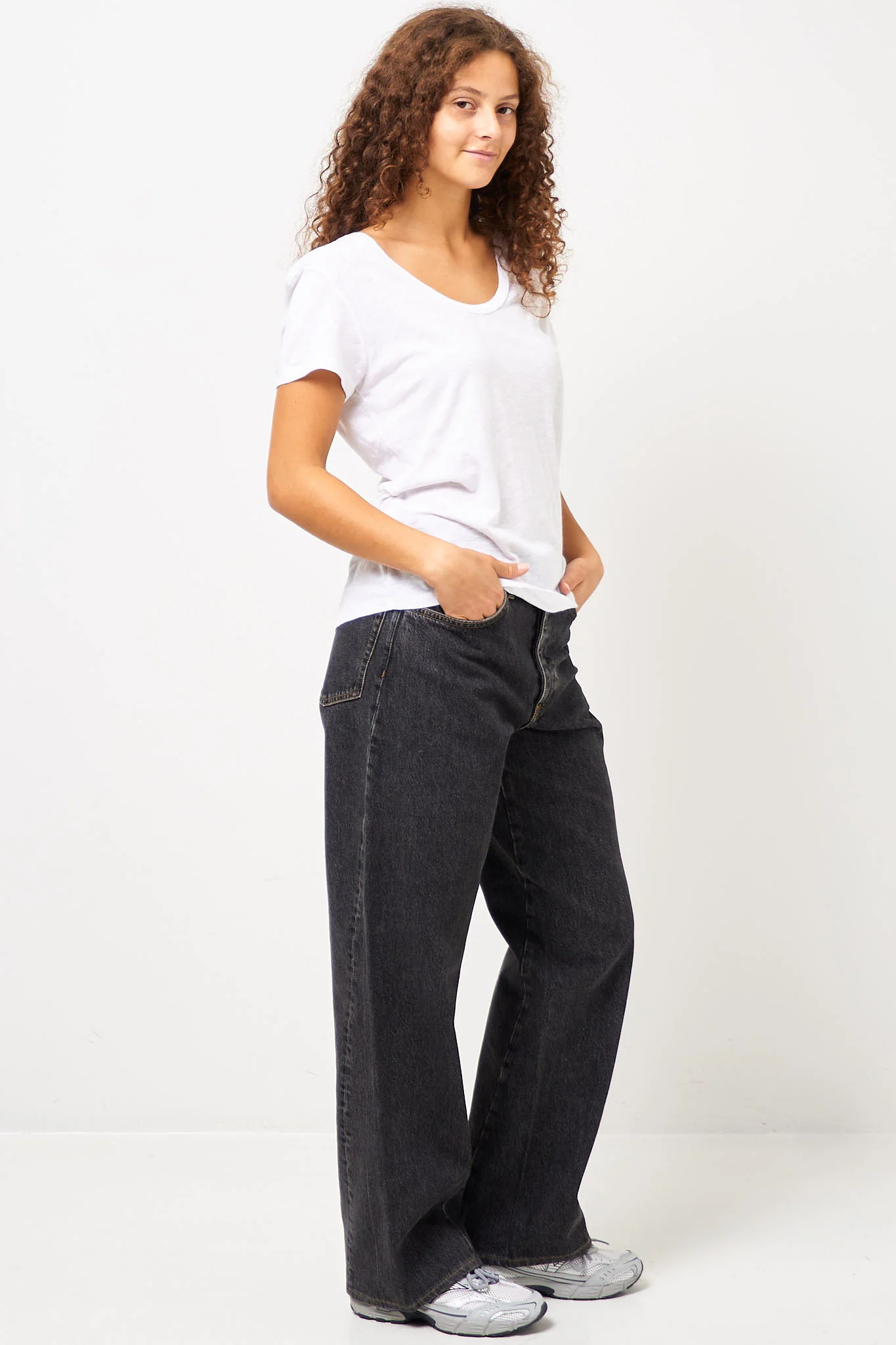 Jacksonville Round Neck T-shirt White fra American Vintage. Denne top er fremstillet i en bomulds blanding. Den er designet med en dyb rund halsudskæring, korte ærmer og har en normal pasform.